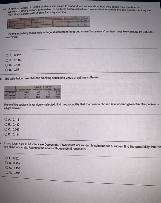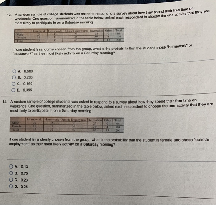 Solved 13 A Random Sample Of College Students Was Asked To Chegg Com